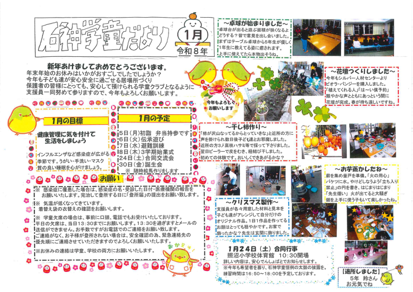 1月の機関紙・行事予定を更新しました。